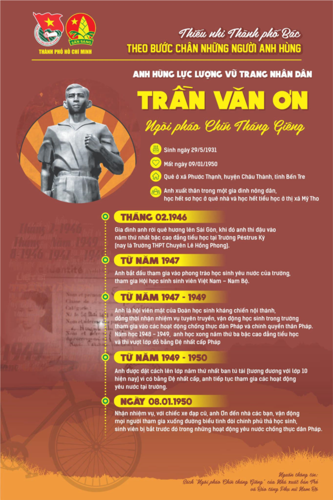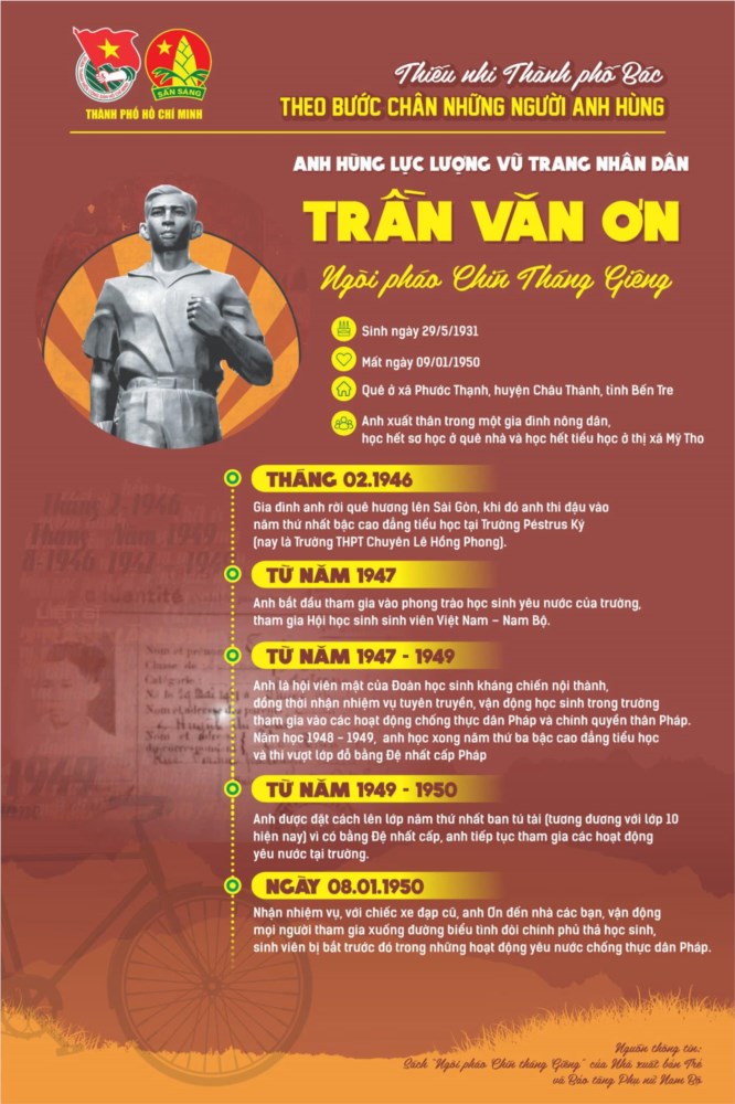 Ngày 09/01/1950, Đoàn Thanh Niên cứu quốc và Đoàn học sinh Sài Gòn - Chợ Lớn đã vận động và tổ chức cho hơn 2.000 học sinh , sinh viên các trường Pétrus Ký, Gia Long, Nguyễn Văn Khuê, Huỳnh Khương Ninh, trường Đại học Y Dược, Pháp Lý, các trường chuyên nghiệp vô tuyến điện, công chính, kỹ thuật, khoa học,… cùng nhiều giáo viên và 7.000 nhân dân Sài Gòn - Chợ Lớn biểu tình đòi bảo đảm an ninh cho học sinh, sinh viên học tập và trả tự do cho những học sinh, sinh viên bị bắt – trong đó có Ban lãnh đạo học sinh cứu quốc Sài Gòn. Đoàn biểu tình kéo đến Nha học chính và Dinh thủ hiến bù nhìn đưa yêu sách. Bọn cảnh sát và lính lê dương ra đàn áp dã man đoàn biểu tình. Thái độ đó đã làm đám đông phẫn nộ, bùng nổ cuộc xung đột. Những người biểu tình dùng mọi thứ vũ khí có trong tay chống trả quyết liệt với lính Pháp, lính Âu Phi và công an Bình Xuyên. Trần Văn Ơn, người thanh niên tiêu biểu cho lòng yêu nước và ý chí đấu tranh bất khuất của học sinh, sinh viên đã bị bọn chúng giết hại trong cuộc xung đột đó.